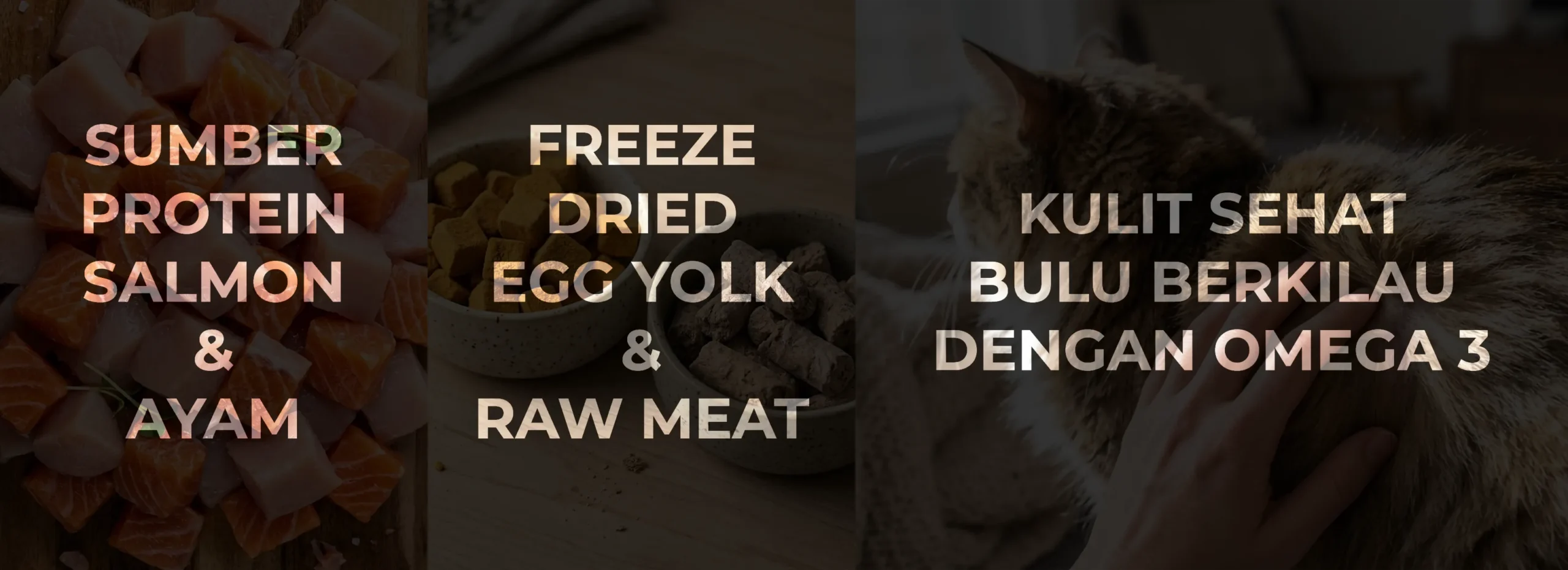 Diperkaya Omega 3 untuk membantu mengurangi kerontokan serta menjaga bulu tetap lembut & berkilau