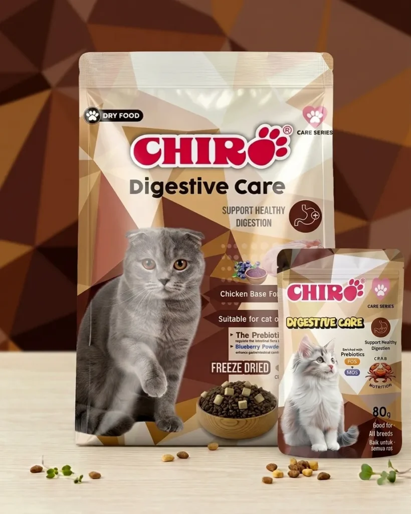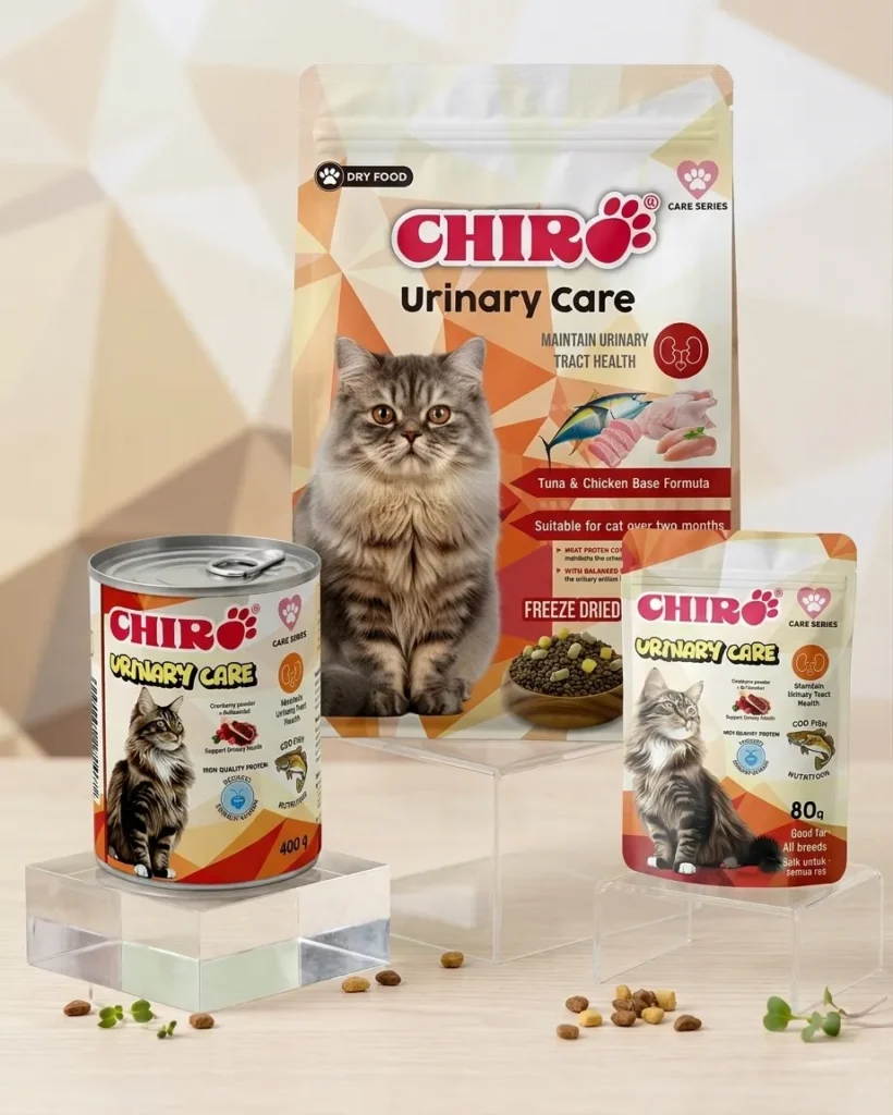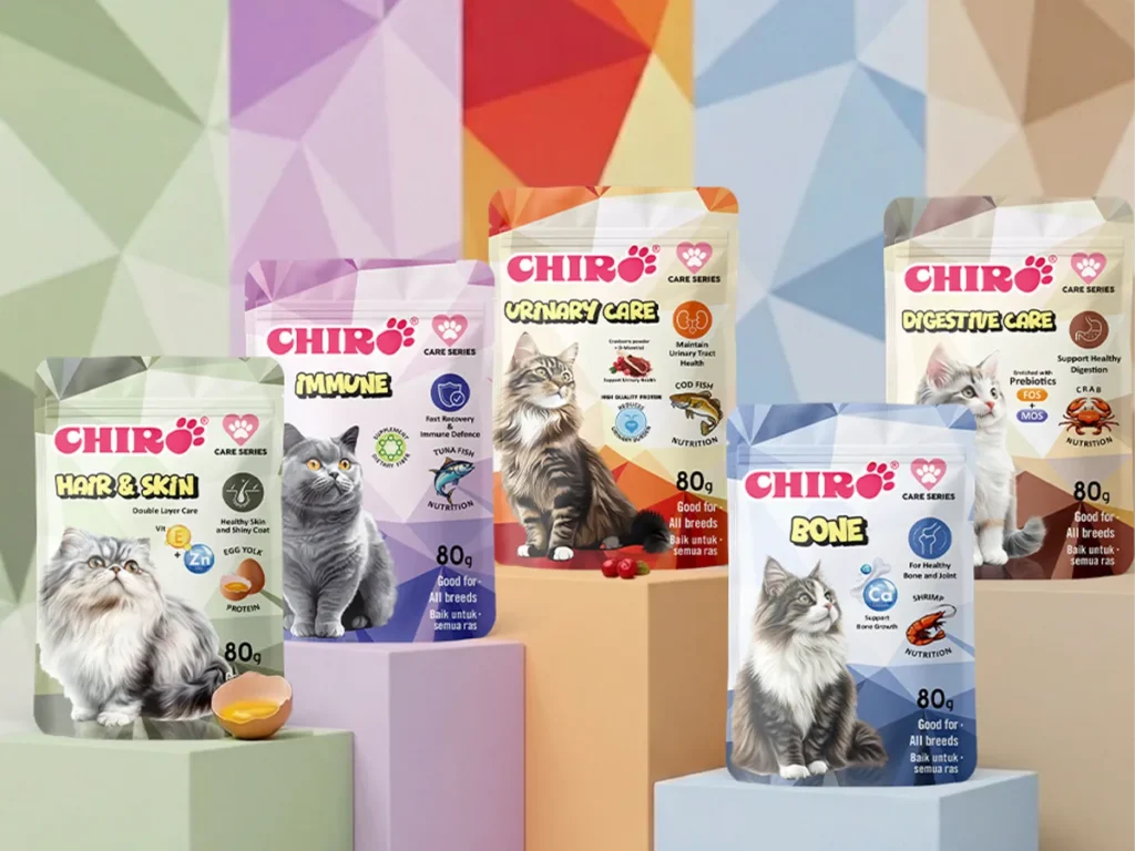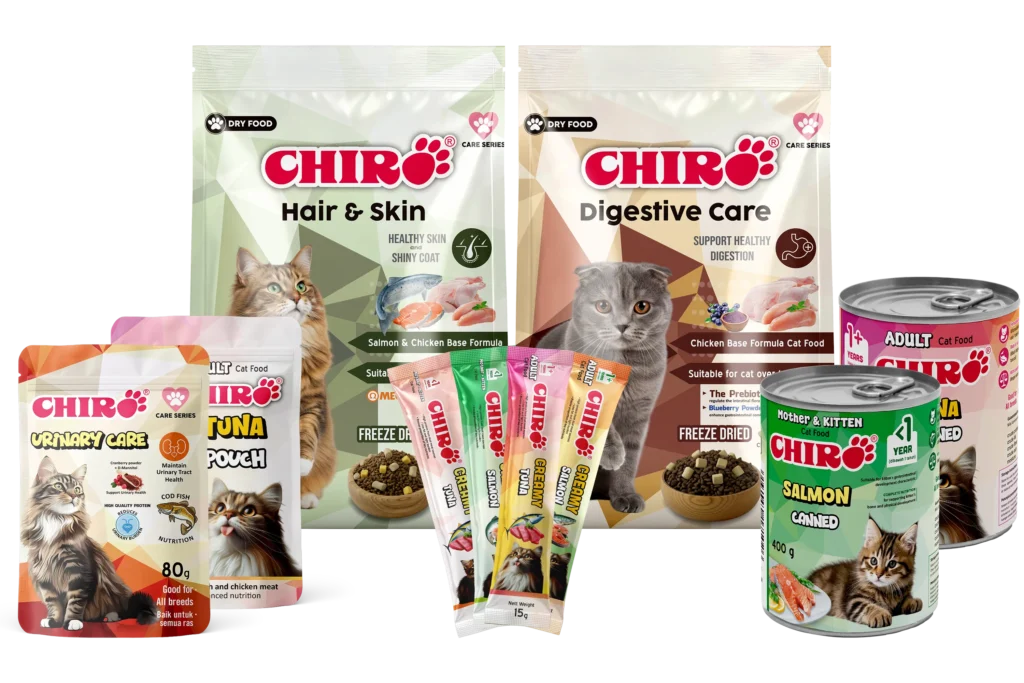 Chiro menghadirkan berbagai pilihan produk, dari makanan utama hingga camilan, untuk mendukung kesehatan dan kebahagiaan kucing Anda setiap hari.