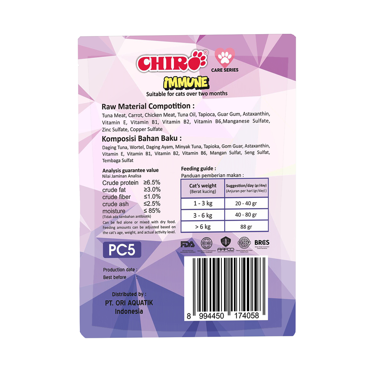 Chiro Pouch Care Immune untuk Kucing diatas 2 bulan yang dapat meningkatkan daya tahan tubuh