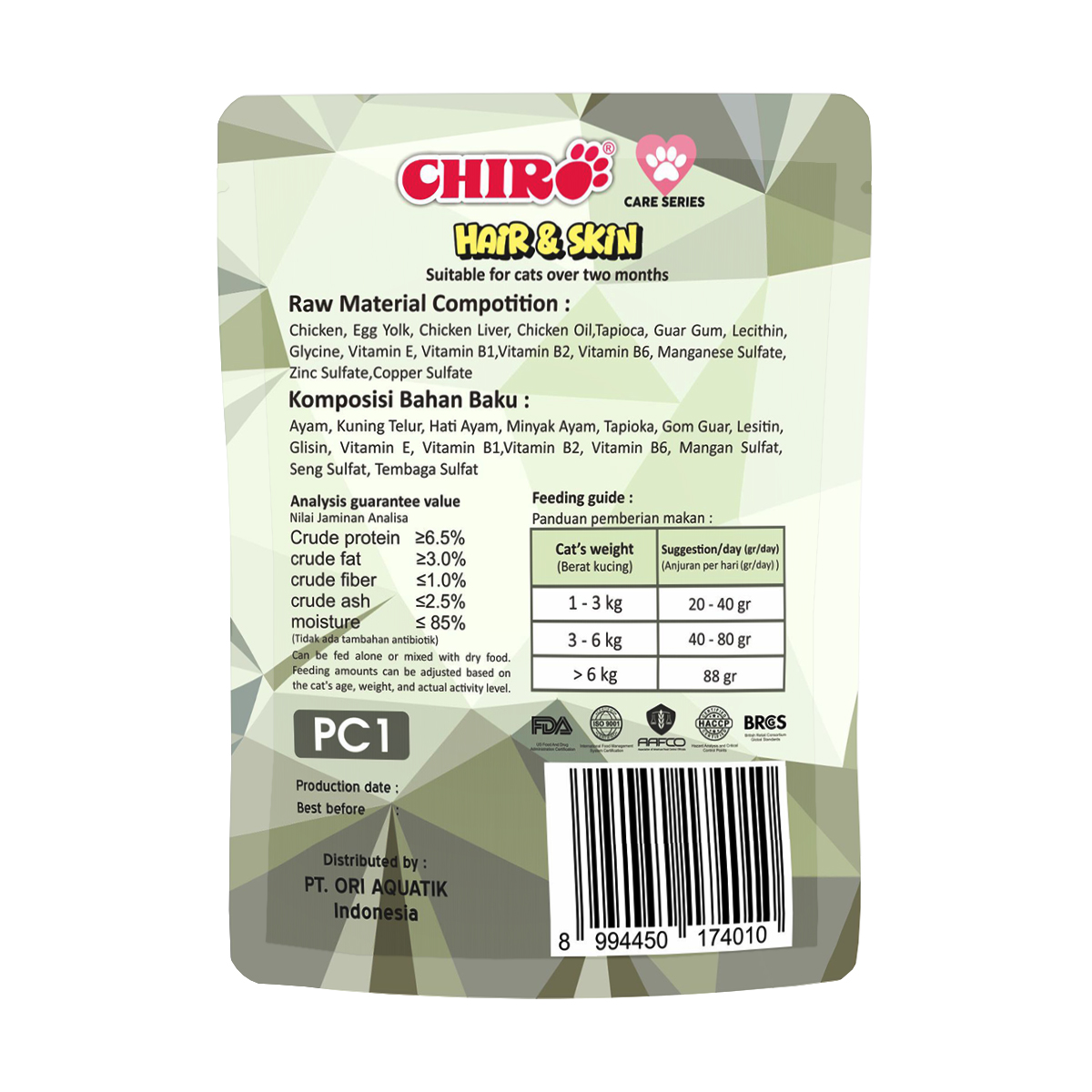 Chiro Pouch Care Hair & Skin untuk Kucing diatas 2 bulan yang dapat menjaga kesehatan kulit dan bulu