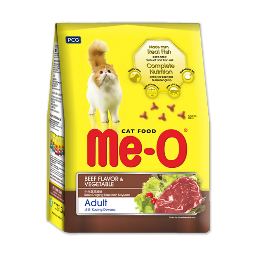 Me-O Dry Food merupakan makanan bernutrisi seimbang. Makanan Kucing Me-O sangat mudah dicerna, dan kucing akan menyukai rasanya yang nikmat. Makanan Kucing Me-O diformulasikan untuk mencapai atau melebihi tingkat nutrisi yang ditetapkan oleh US National Research Council (NRC) dan Association of American Feed Control Officials (AAFCO) bagi kucing