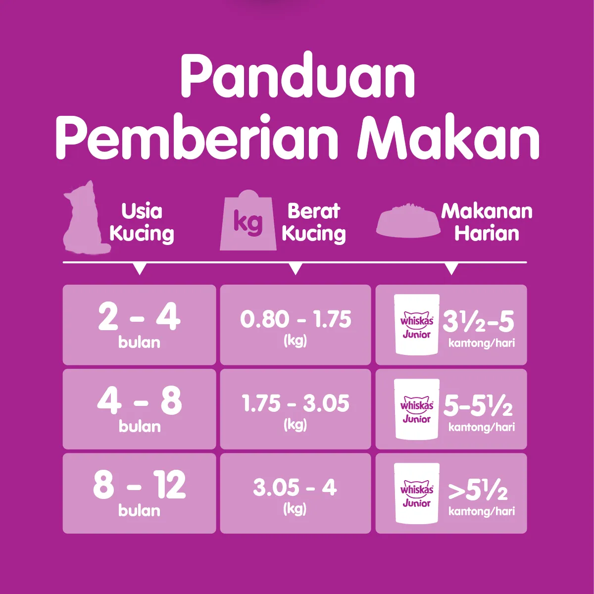 • MENJAGA HIDRASI KUCING ANDA – WHISKAS pouch adalah makanan kucing dewasa yang meningkatkan asupan air untuk mendukung hidrasi kucing Anda