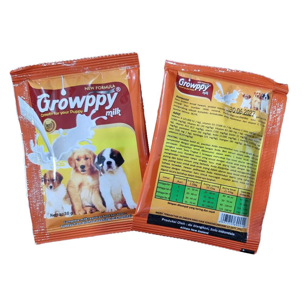 Untuk mendukung pertumbuhan anak anjing, Susu Anjing Growppy juga memiliki kandungan Fructo-Oligo-Saccharides(FOS) untuk menjaga keseimbangan dan kesehatan sistem pencernaan.